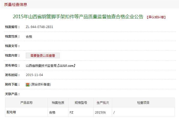 2016山西省质监局公布9种工业产品质量监督抽查结果,我公司合格认证